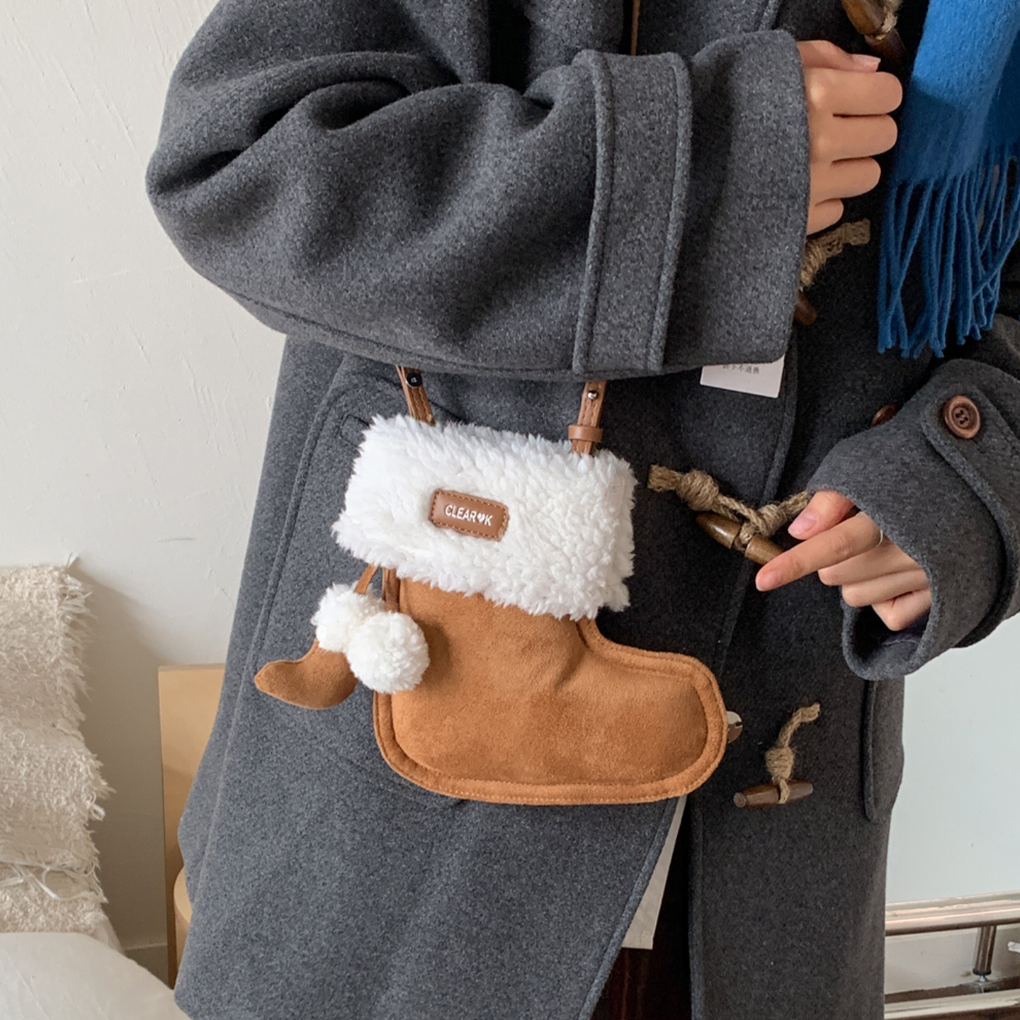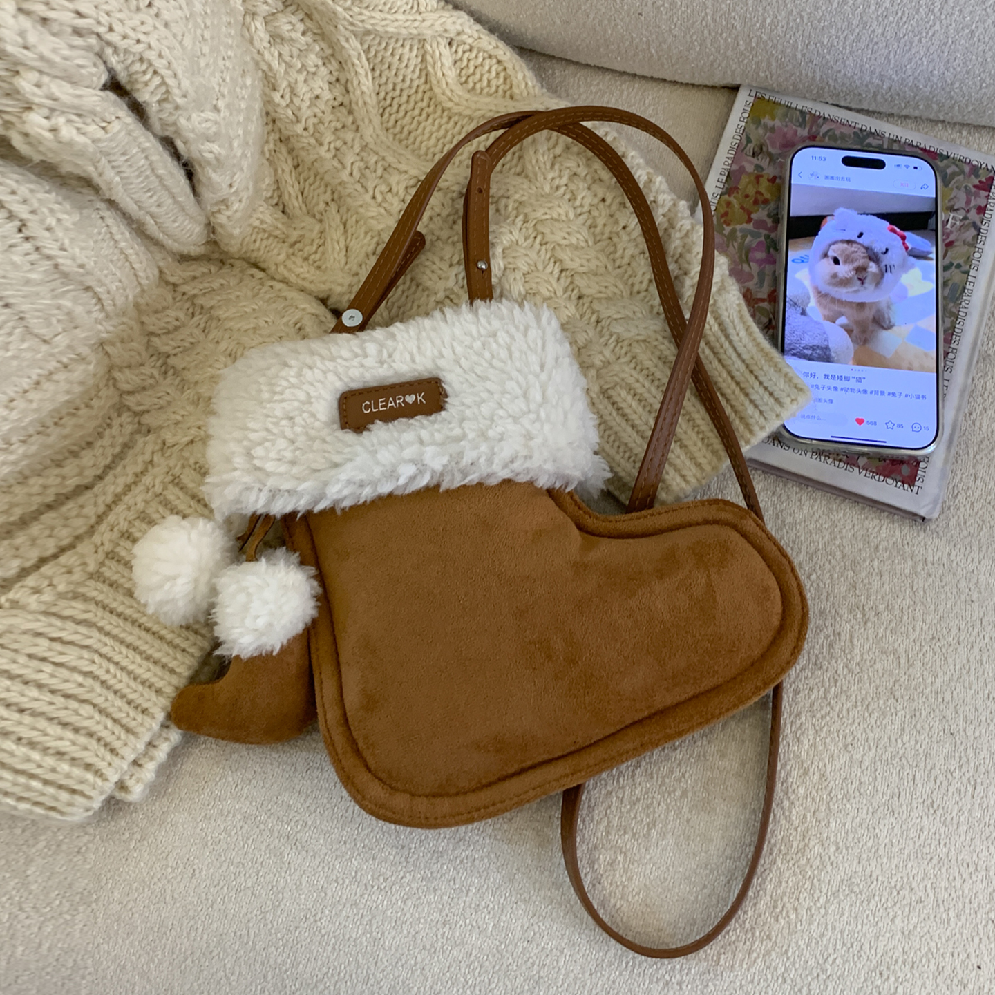 圣诞袜子毛绒包包女式2025新款红色秋冬高级感单肩包麂皮绒斜挎包