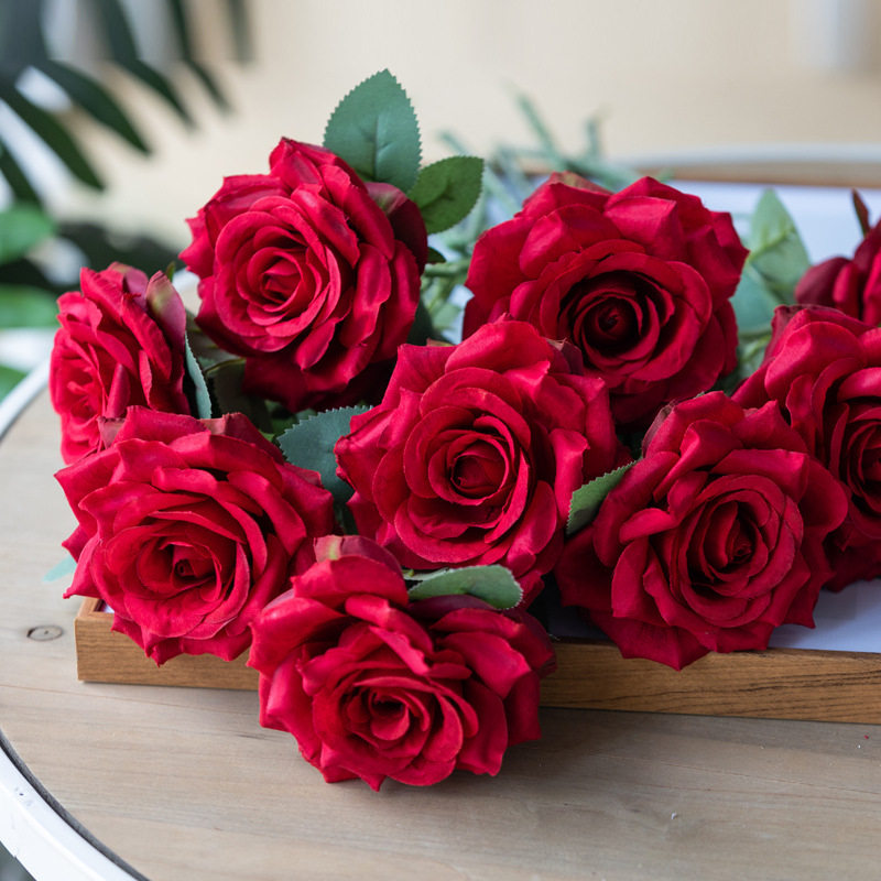 仿真玫瑰花绢花 家居客厅装饰摆件人造单支红色玫瑰假花束