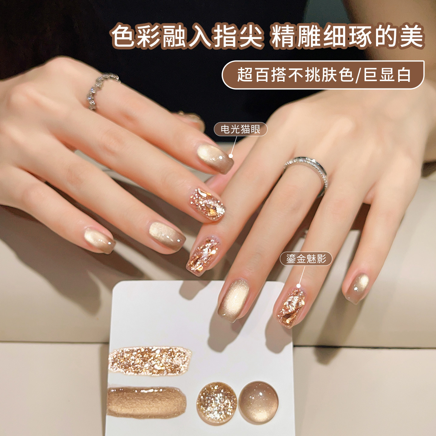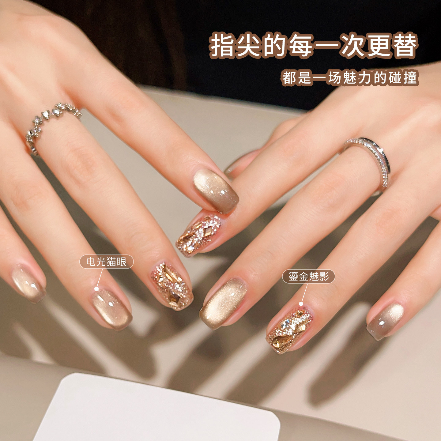 秋冬爆款金光玻璃珠猫眼美甲套装