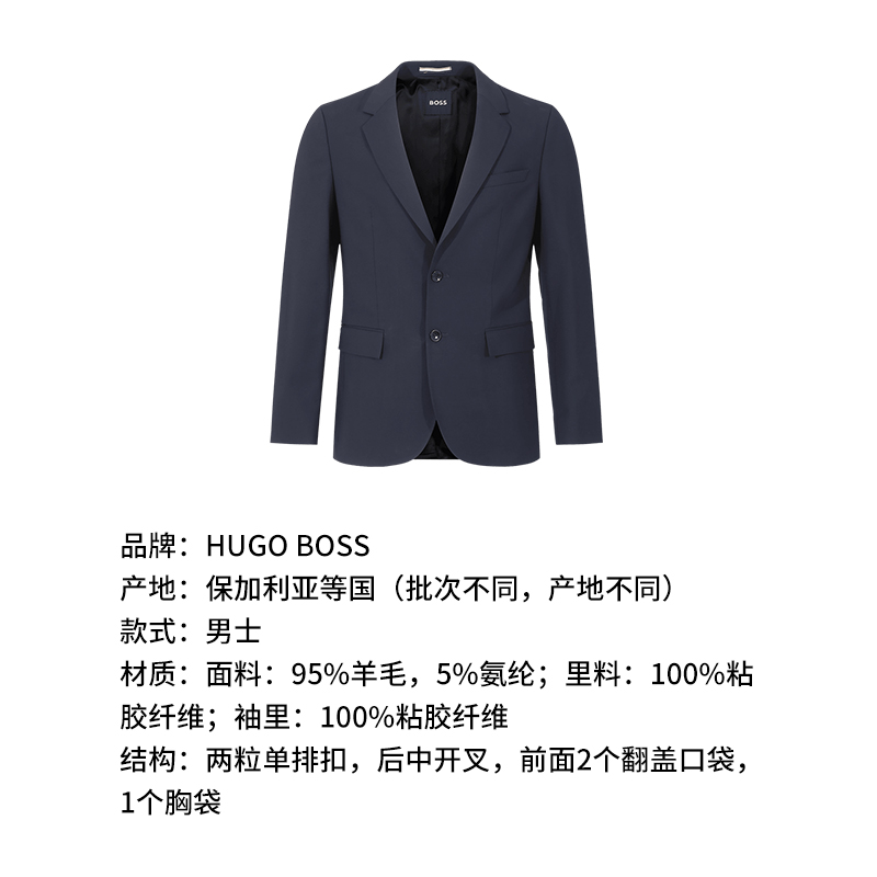 BOSS 男士black系列羊毛两粒单排扣西服西装上衣外套 50521633