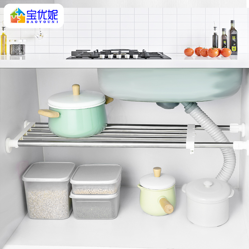 厨房橱柜分层隔板免打孔伸缩柜内锅具收纳碗盘储物架下水槽置物架