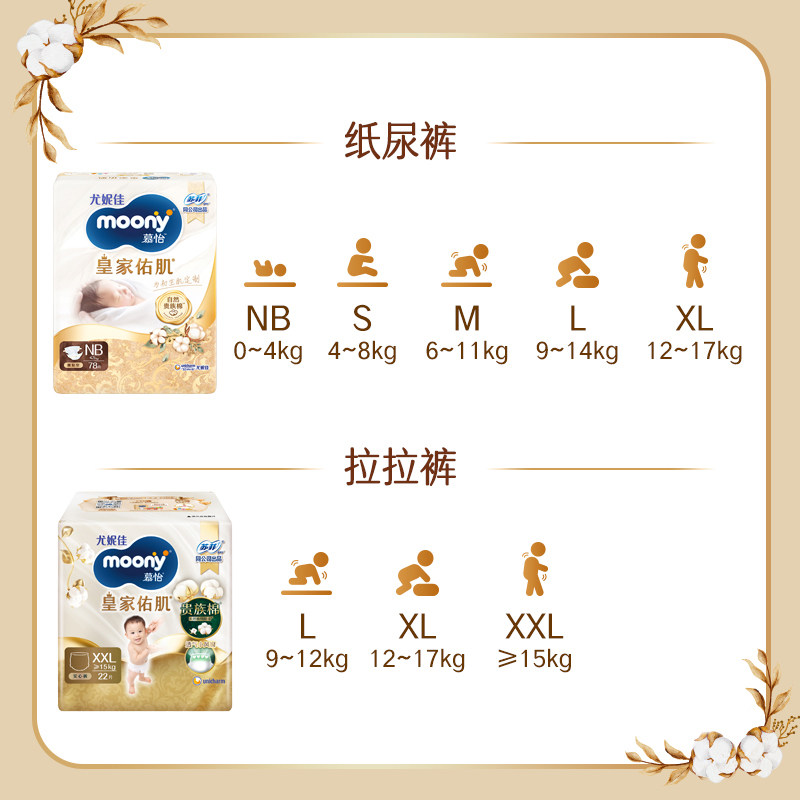 尤妮佳moony慕怡皇家佑肌贵族棉新生儿腰贴婴儿纸尿裤NB/S/M/L/XL