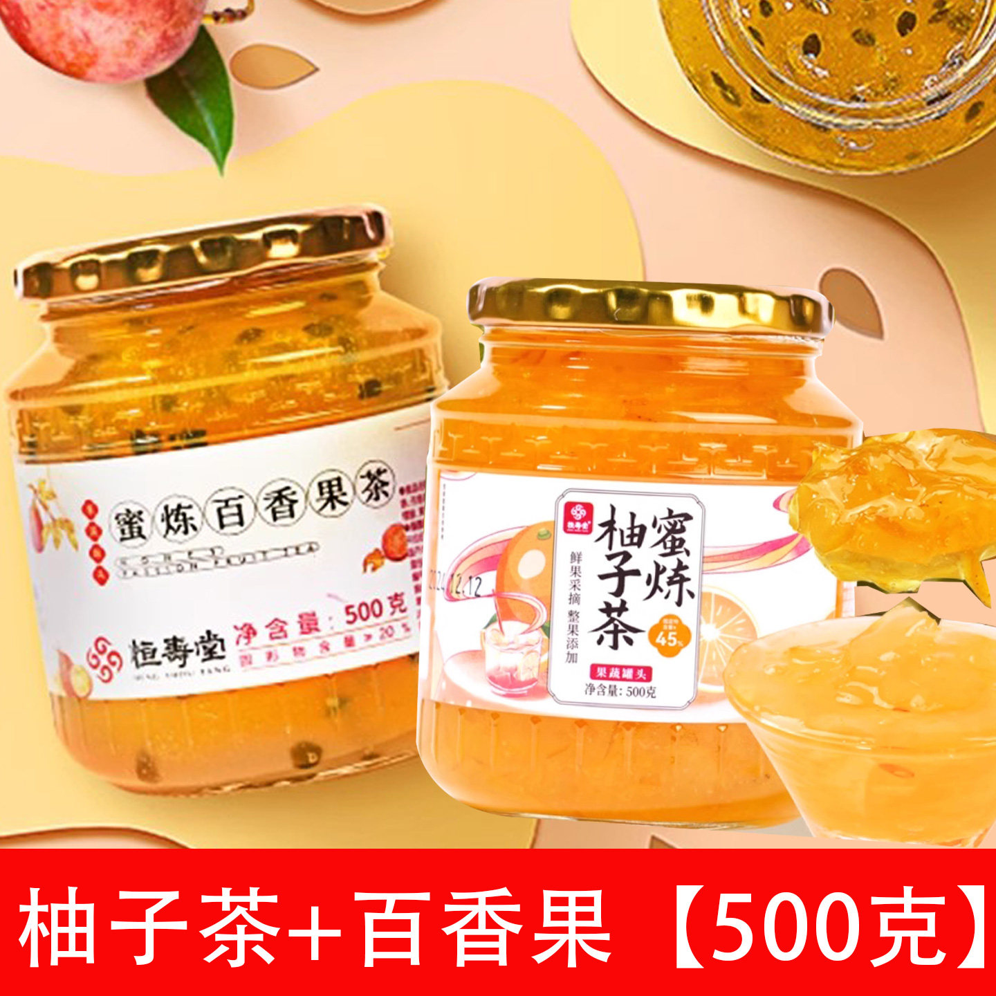 年货节狂欢]恒寿堂蜜炼柚子茶500g+柠檬茶百香果茶水果茶冲饮罐装
