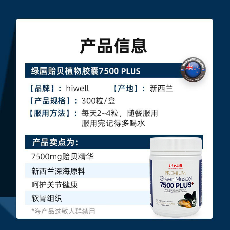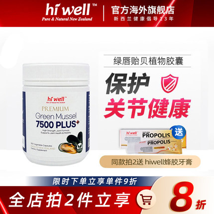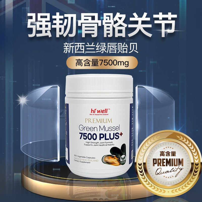 直邮 hiwell海威新西兰绿唇贻贝植物胶囊增强关节7500mg进口贝类
