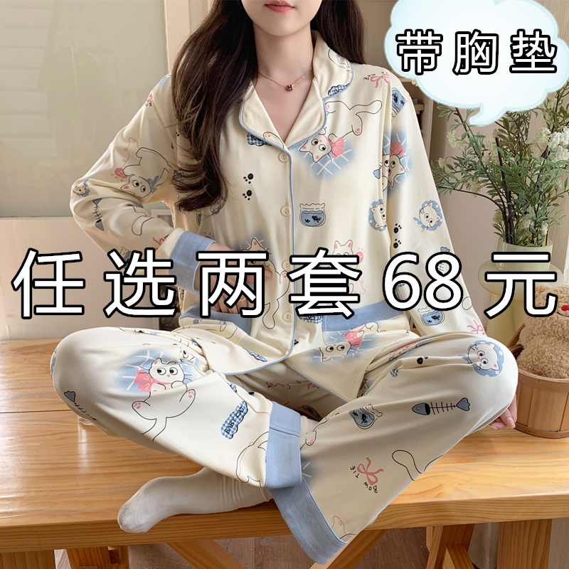 带胸垫月子服春秋纯棉产后可哺乳