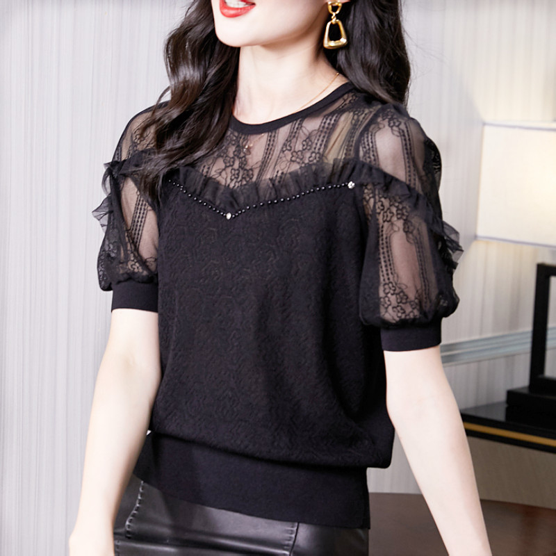 粉色上衣拼接短袖欧货针织衫