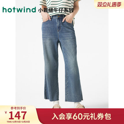 热风女士牛仔裤2025年秋款直筒牛仔裤喇叭开叉时尚微喇裤显瘦裤子