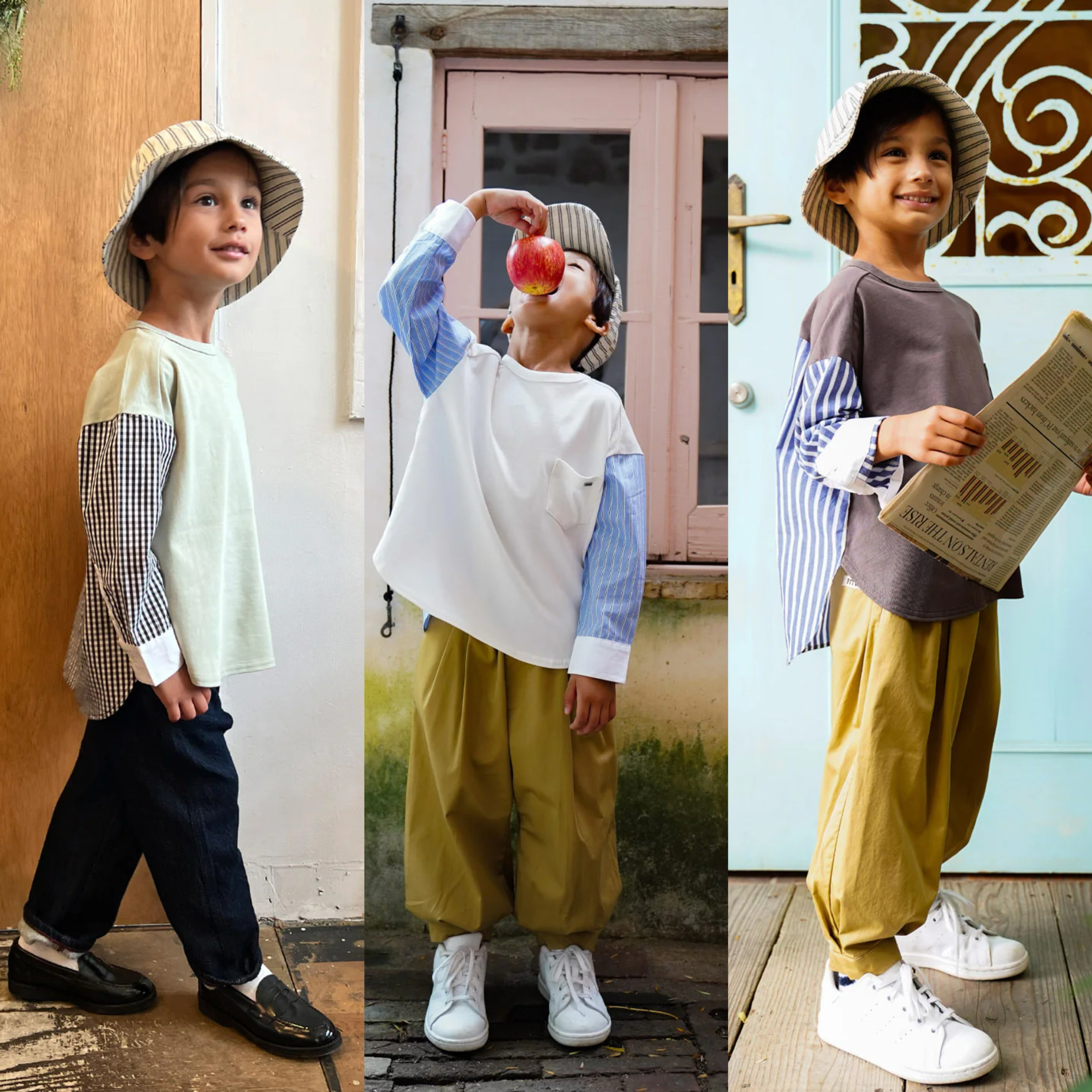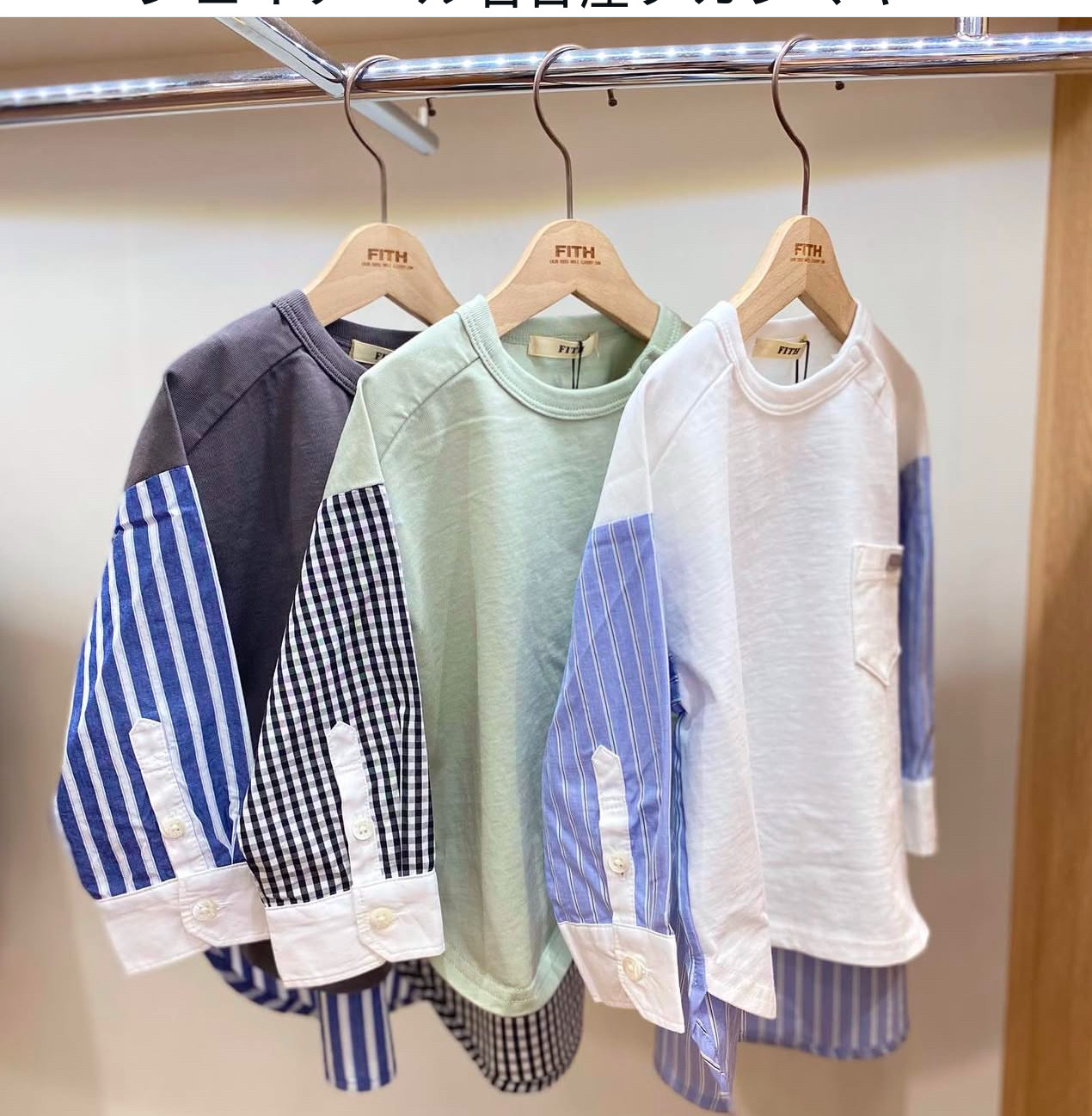 男童长袖T恤2025春季新品中大童条纹衬衫袖休闲上衣Fith丝光全棉