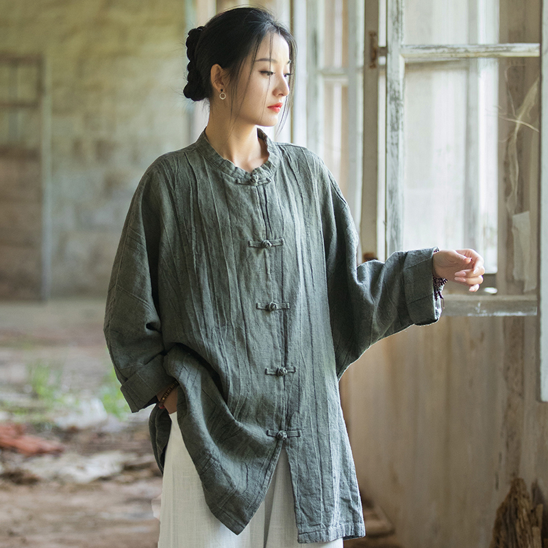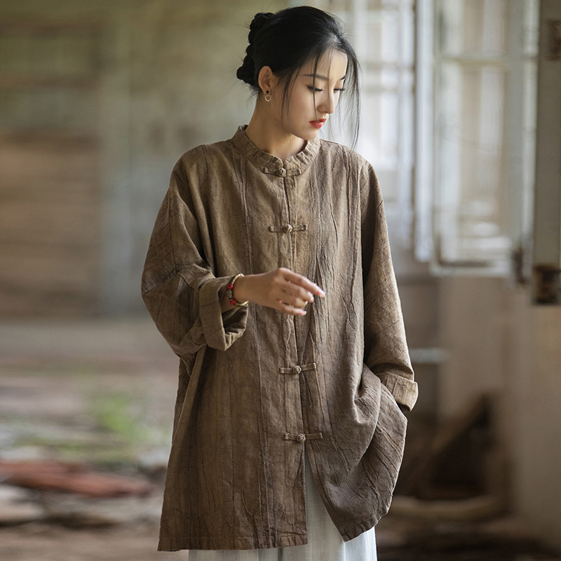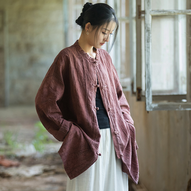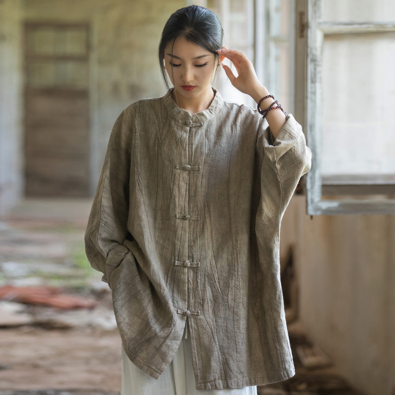 苎麻扎染清冷感盘扣开衫春秋宽松禅意茶服棉麻女士上衣新中式外套