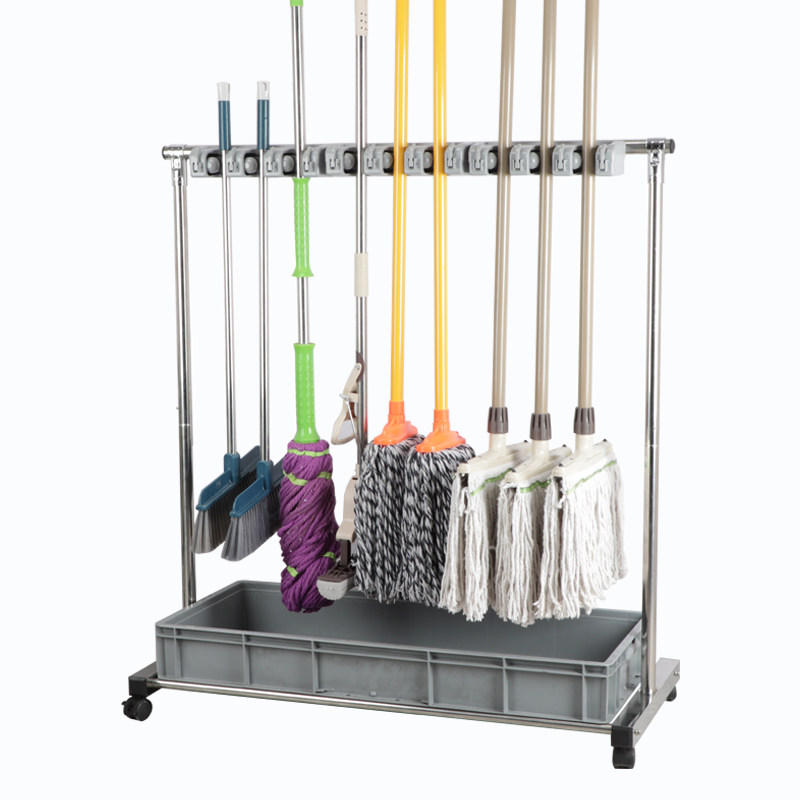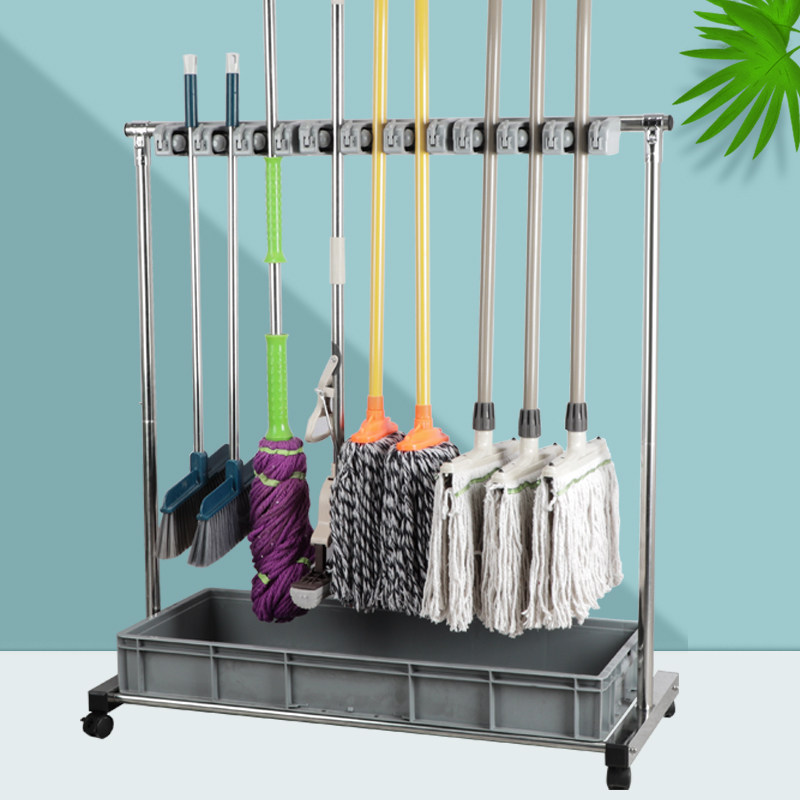 不锈钢可移c动拖布扫把墩布拖把架子落地式工厂学校清洁工具收纳