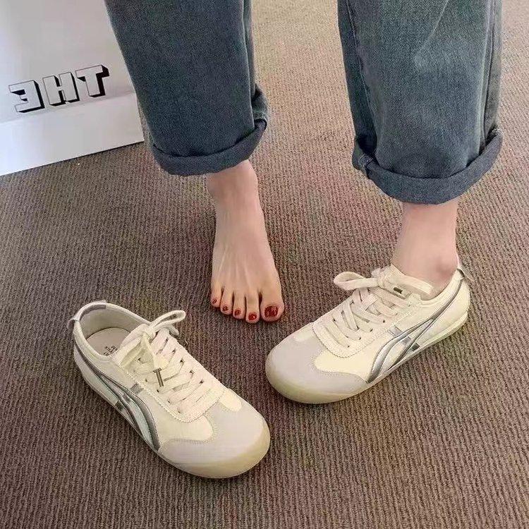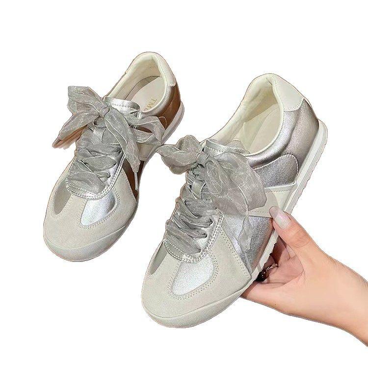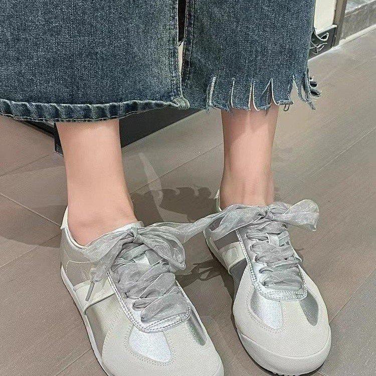 复古百搭休闲运动板鞋2025年春夏季新款软皮小众银色芭蕾女
