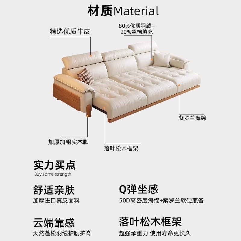 电动多功能真皮沙发床客厅头层牛皮复中古风可伸缩小户型直排沙发