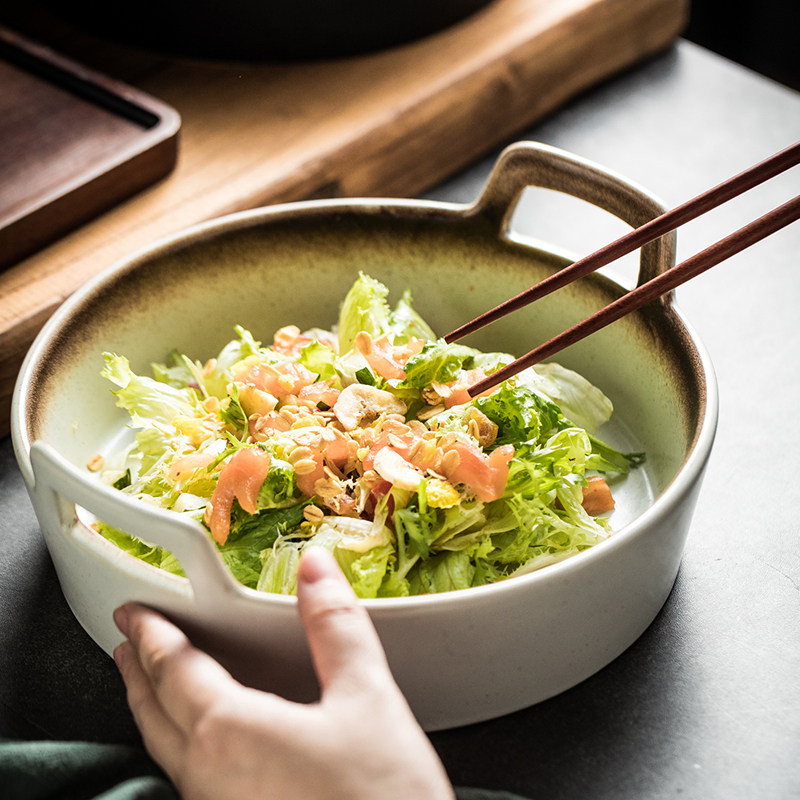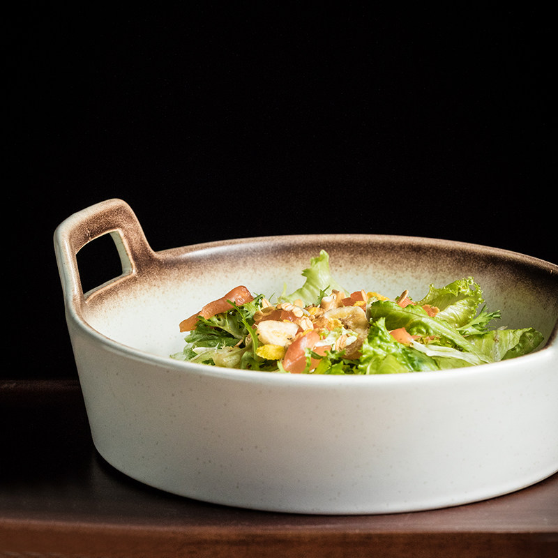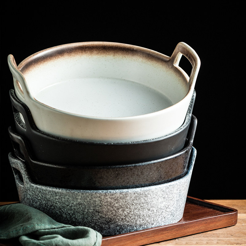 双耳陶瓷盘西餐盘大容量深盘四川重庆麻辣烫小龙虾装盘牛杂饺子盘