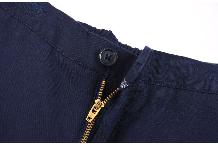 男士春夏薄款舒适棉麻料斜插口袋净色修身小脚9分休闲裤