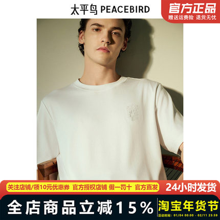 【商场同款】太平鸟男装T恤春夏新款刺绣净色刺绣短袖 B1CNF1430