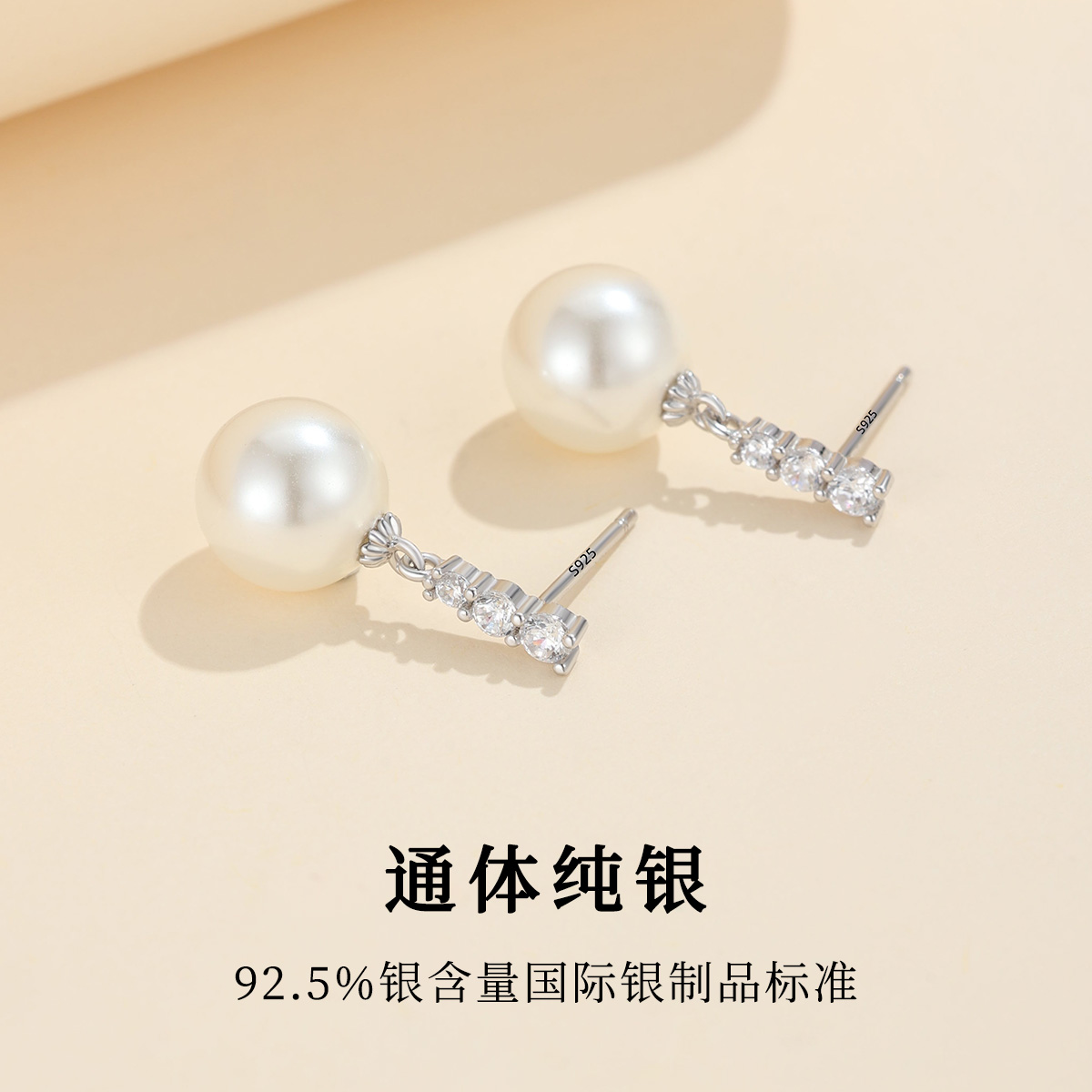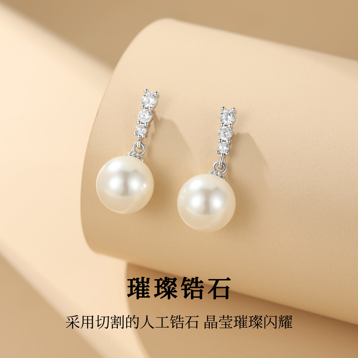S925纯银饰闪钻珍珠耳钉2025年新款气质耳饰耳坠女秋冬高级感耳环