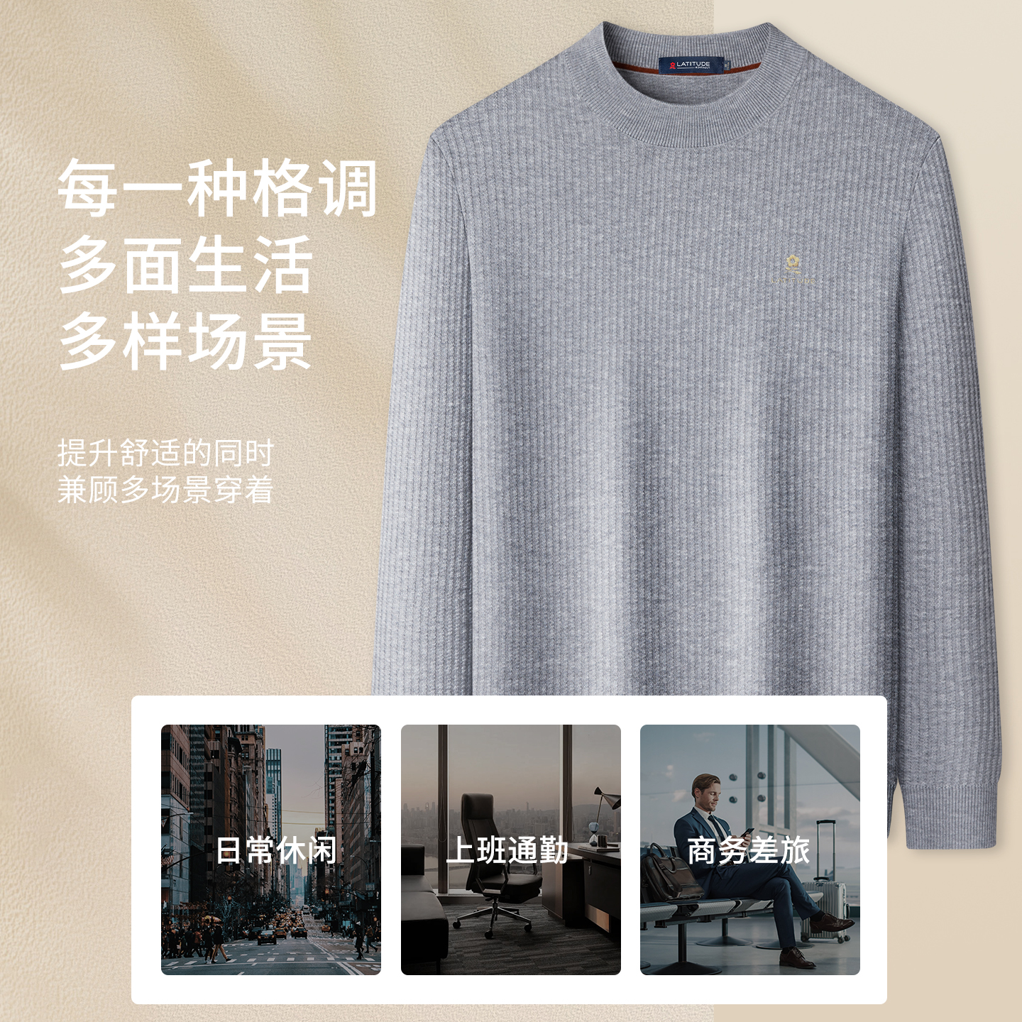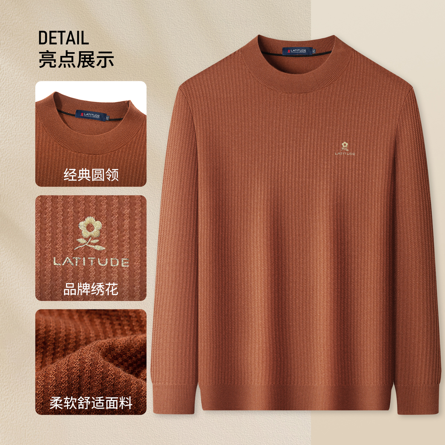 梦特娇男士针织衫羊绒羊毛圆领休闲长袖毛衣冬季提花通勤打底衫Z