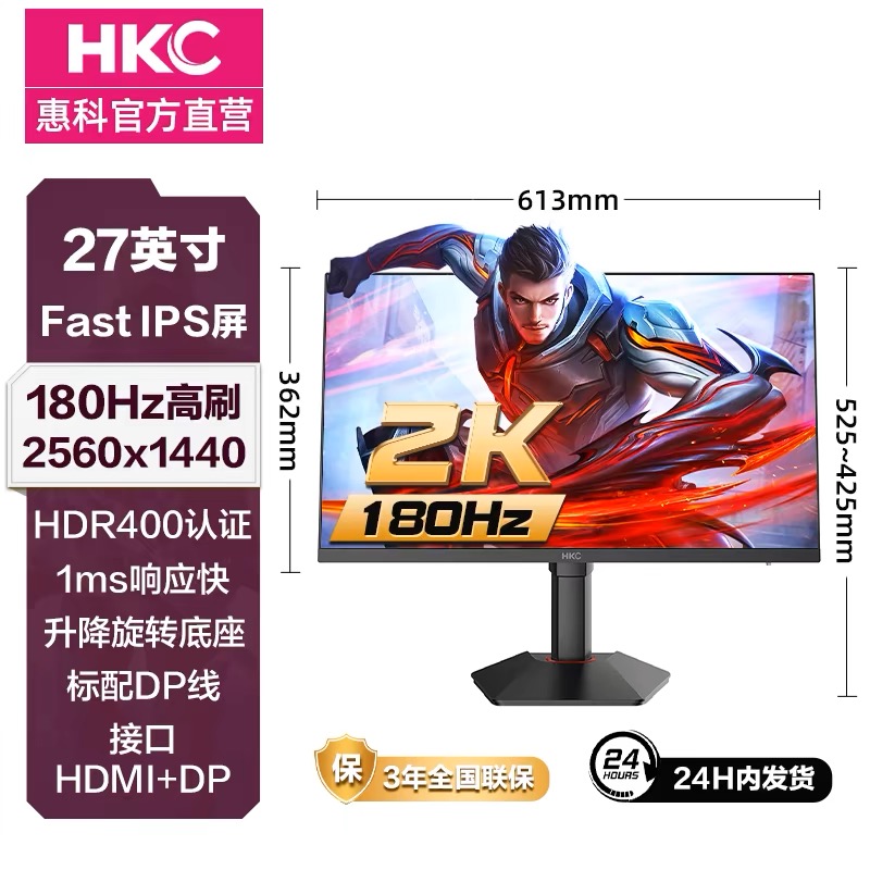 HKC显示器24-27英寸1K180HZ 2K200hz高刷电竞屏幕猎鹰二代经典版