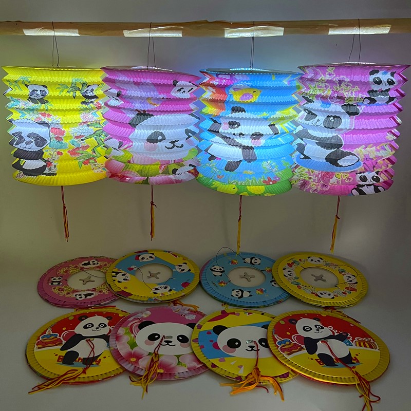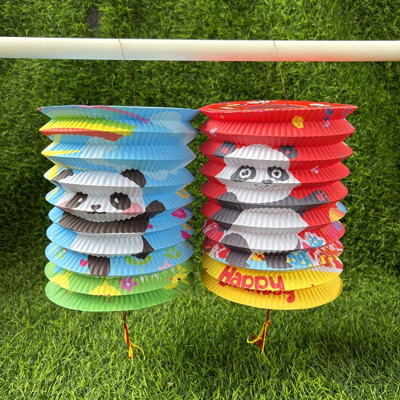 网红卡通大熊猫礼物生日节日装饰吊挂闪光花灯彩光折叠风琴纸灯笼