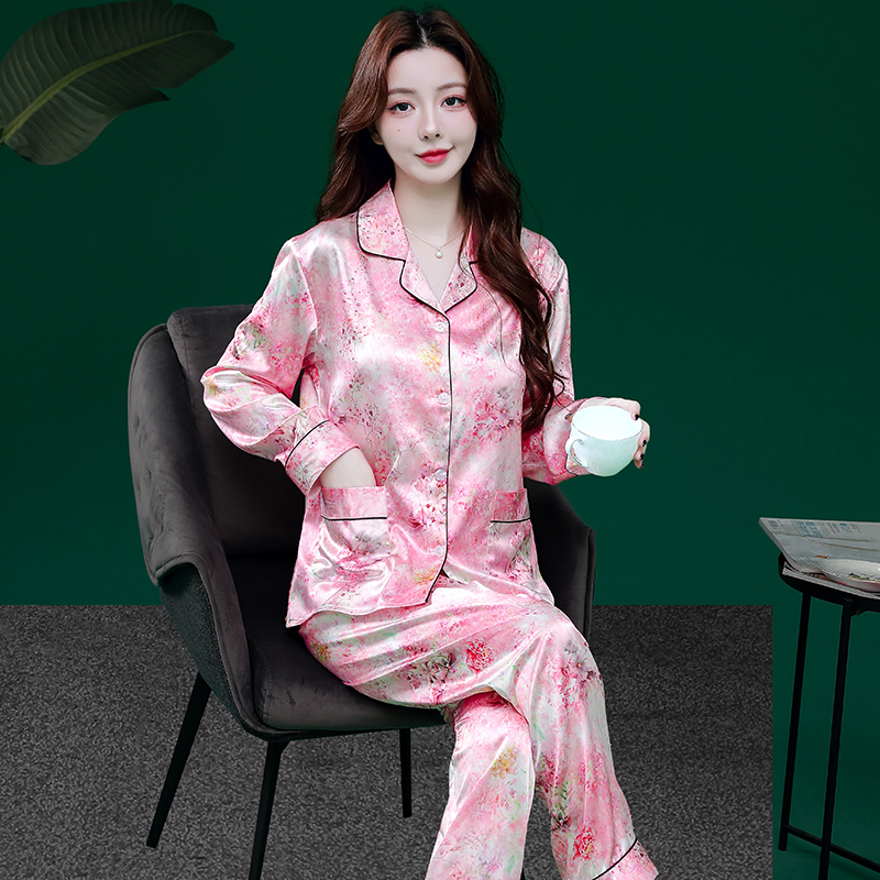 睡衣女春秋季长袖长裤薄款丝绸女士套装大码宽松夏季冰丝家居服女