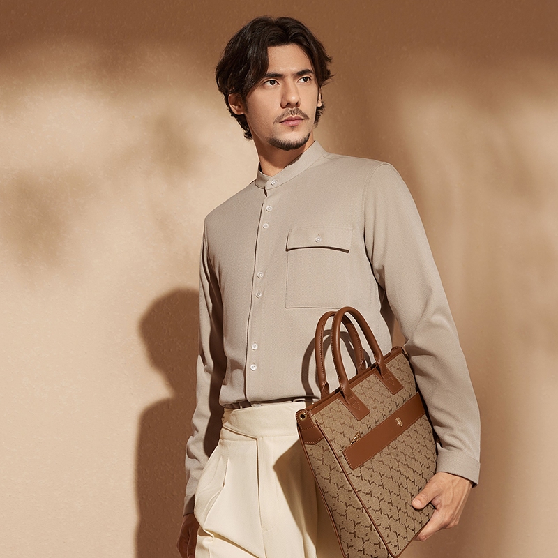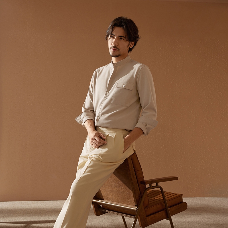 【中华立领】柒牌长袖衬衫男士秋季国风新中式休闲口袋国风衬衣