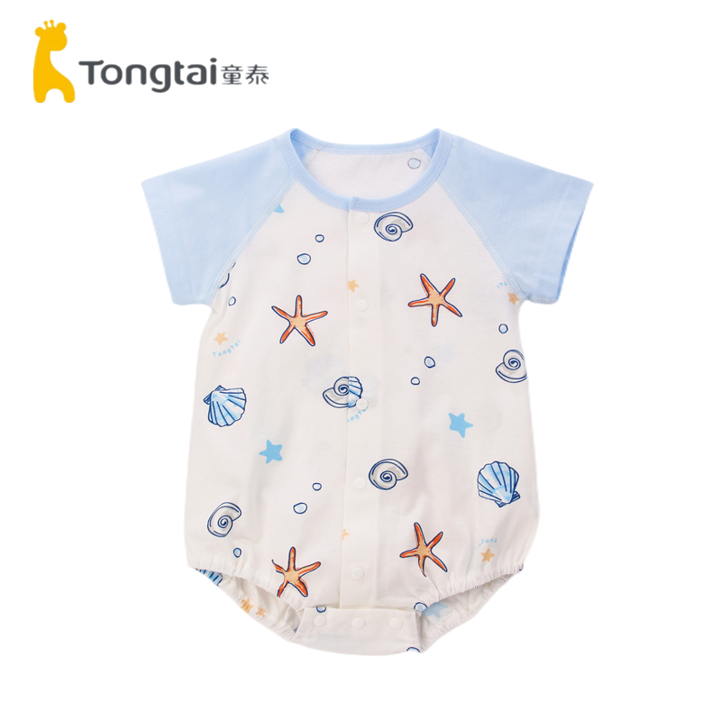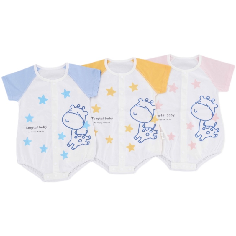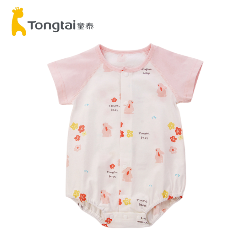 童泰婴儿短袖包屁衣纯棉夏季薄款3-18月男女宝宝对开短袖三角哈衣