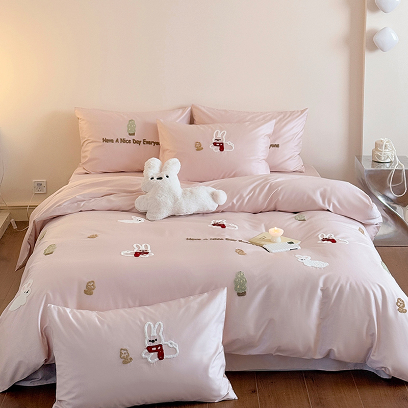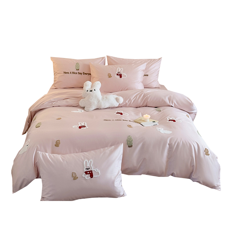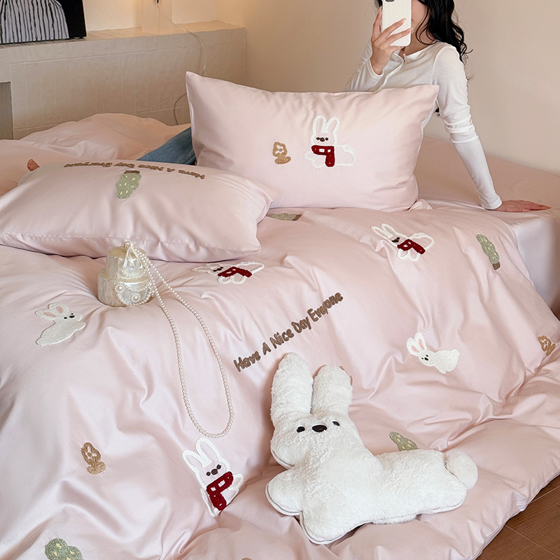 轻奢高端100支长绒棉四件套卡通毛巾刺绣被套儿童小清新床品1.2m