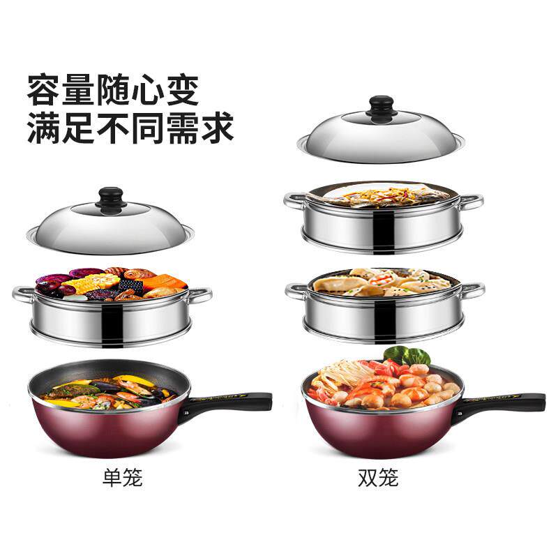 鸿迪定时电蒸锅电锅多功能家用煎炸蒸炒一体锅电蒸笼蒸气锅快煮锅