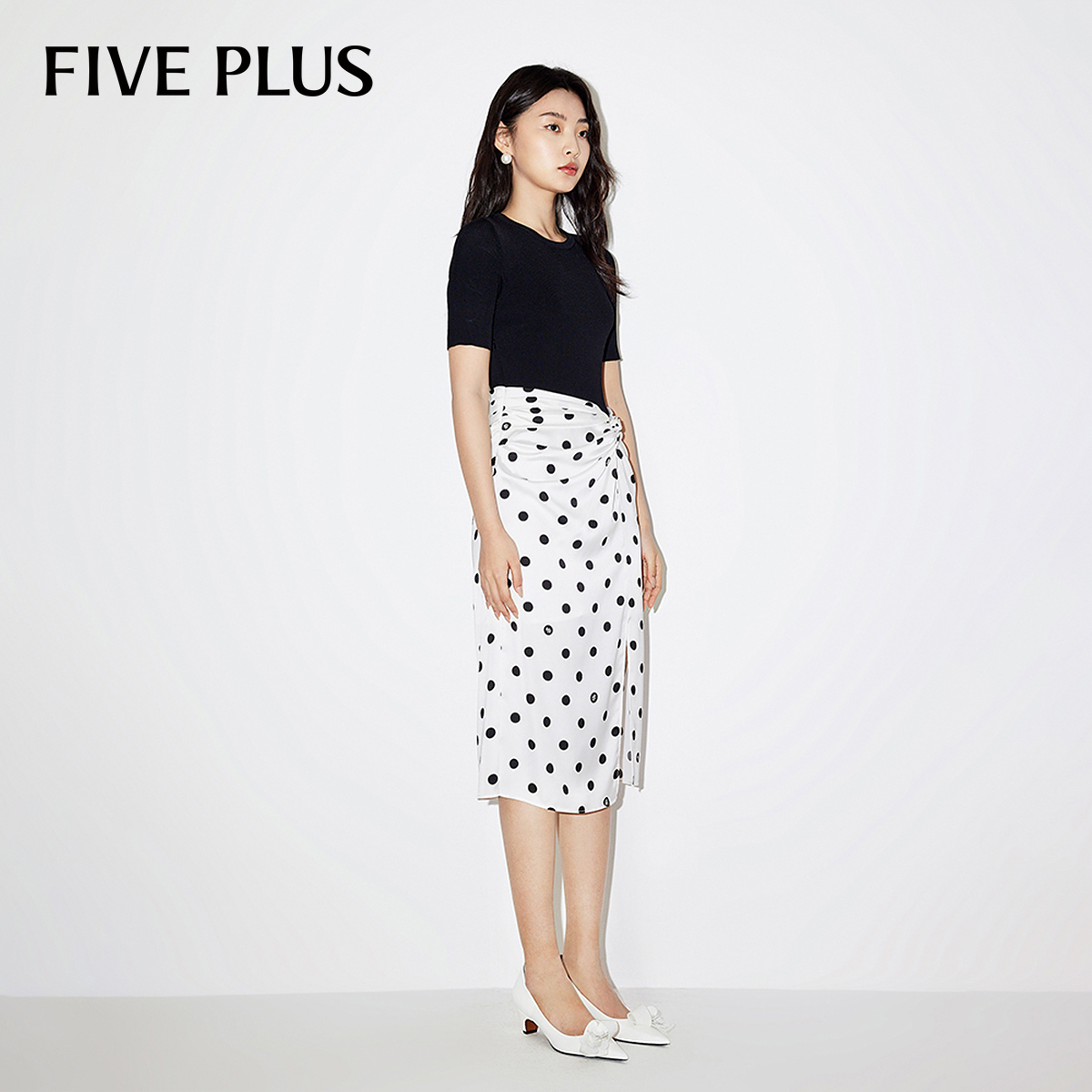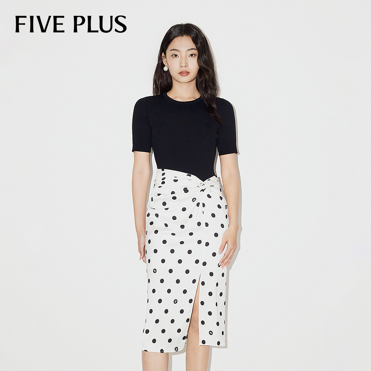 FIVE PLUS连衣裙女毛织中长款裙子收腰开叉设计感2024新款女夏装