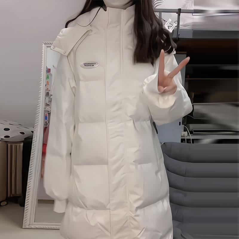 韩国女生超好看连帽棉服女中长款冬年新款高级感宽松百搭棉衣