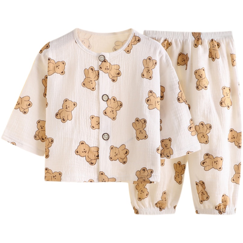 儿童纯棉睡衣套装纱布开衫春夏装薄款空调服小男孩女童宝宝家居服