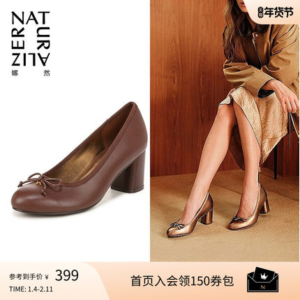 【清仓捡漏】Naturalizer娜然圆头粗跟高跟鞋女蝴蝶结单鞋SIENNA