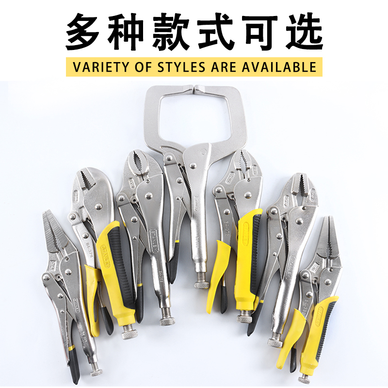 史丹利弧齿大力钳五金工具夹管钳夹持钳子固定钳圆口尖嘴C型夹钳