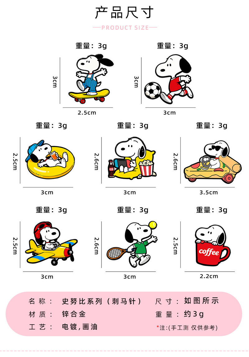 运动史努比徽章滑板足球棒球小狗pin童趣卡通书包帽子装饰胸针