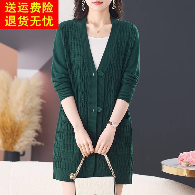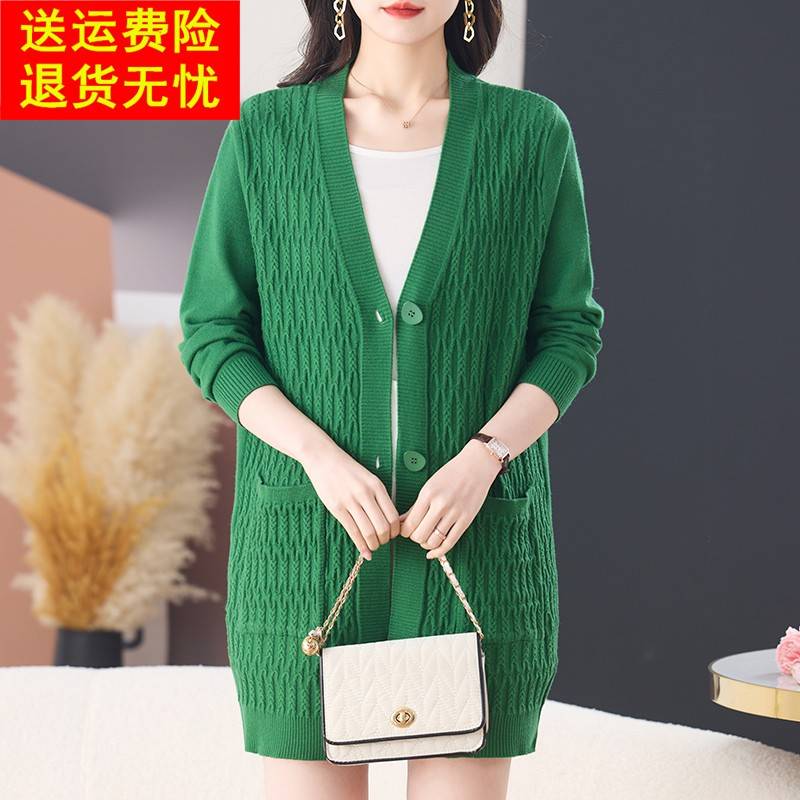 针织开衫外套女士毛衣春秋季新款妈妈中长款宽松遮屁股显瘦上衣