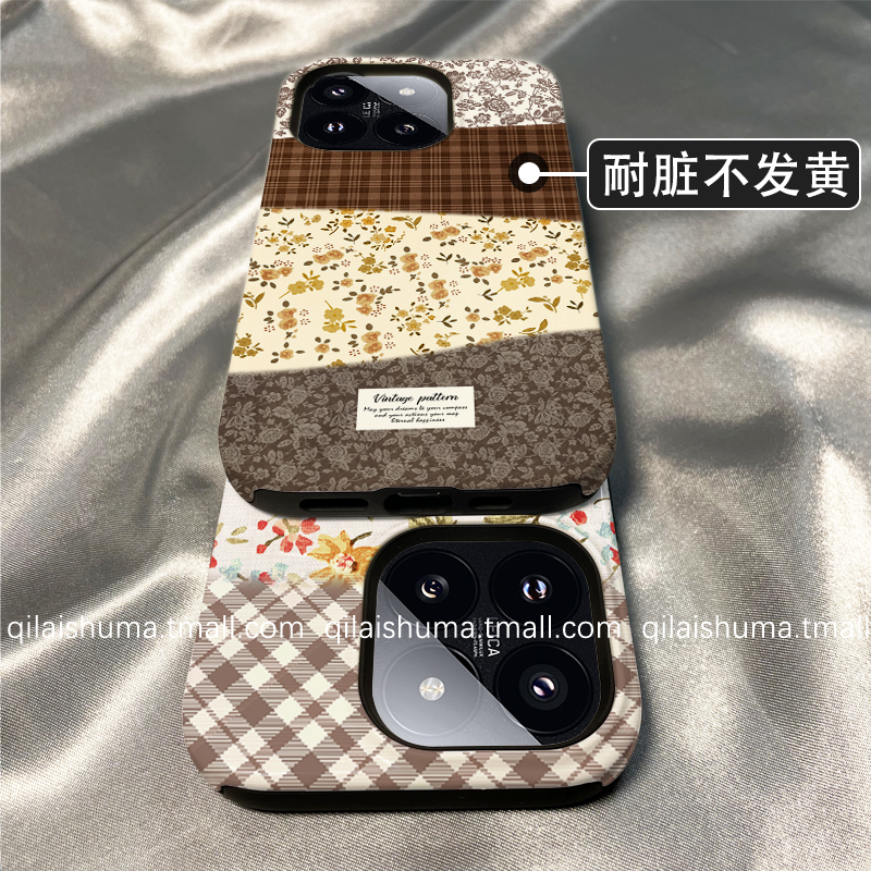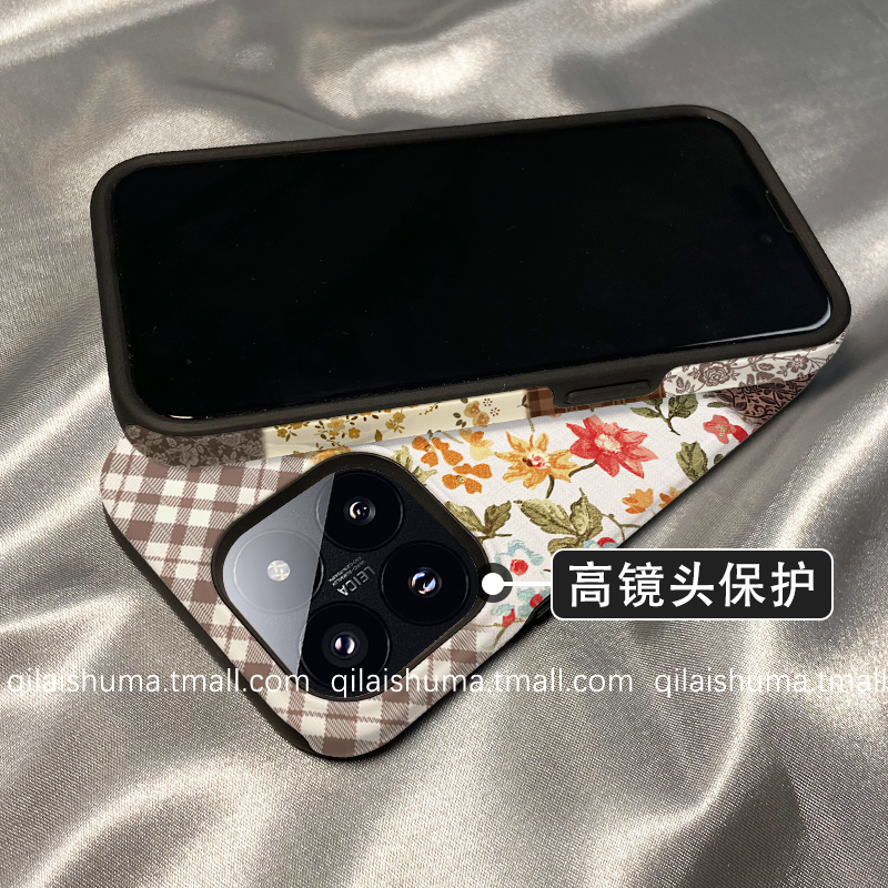 柒莱二合一菲林壳适用于小米17/15pro手机壳14新款13红米k80k70女60秋冬复古格纹碎花note14防摔12硅胶11软套