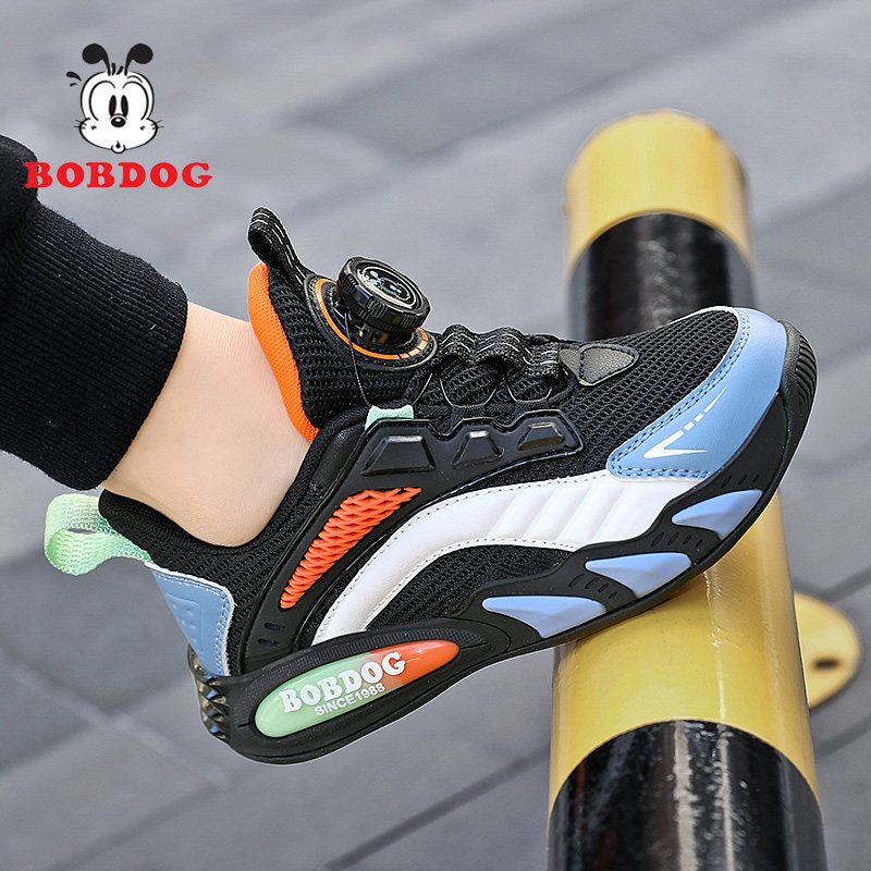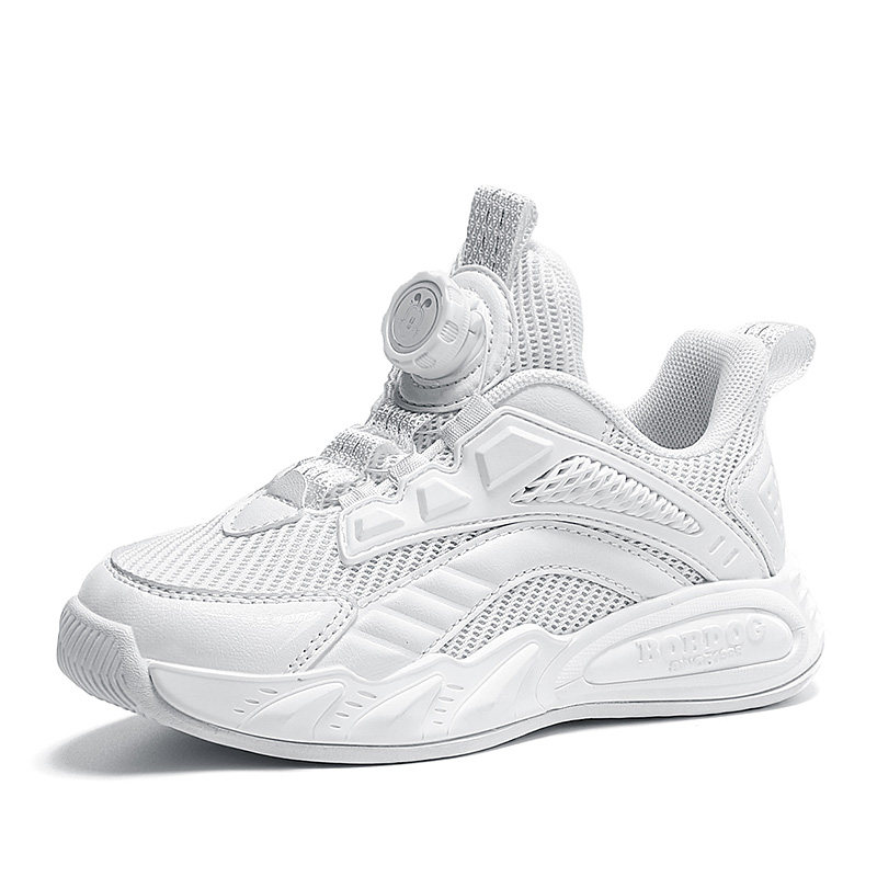 巴布豆儿童小白鞋2025新款春网面透气运动鞋旋纽扣白色男童篮球鞋