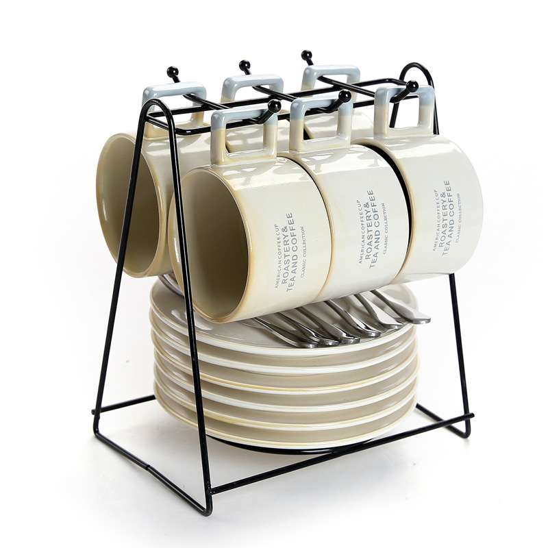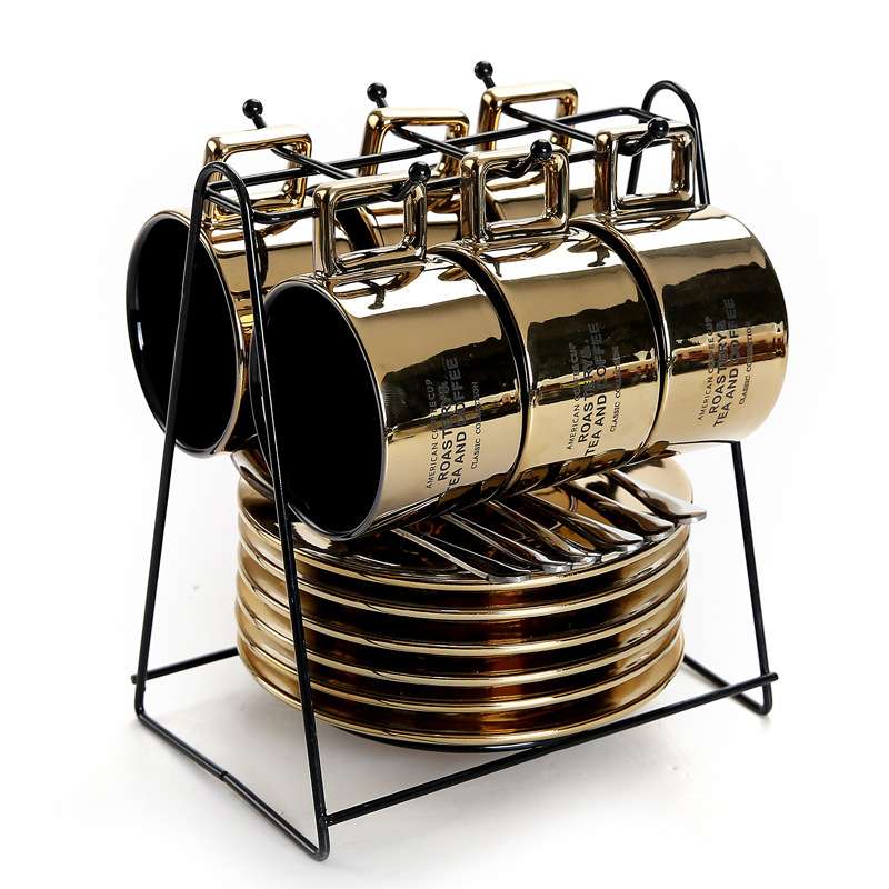 欧式下午茶茶具骨瓷简约陶瓷咖啡杯套装带碟英式杯架整套6杯