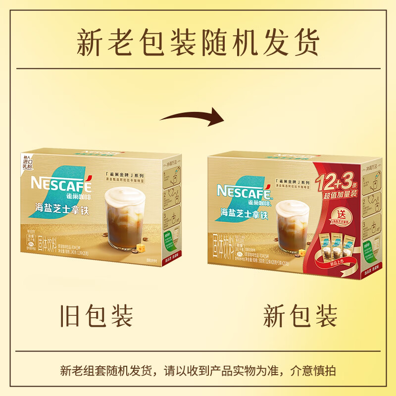雀巢咖啡金牌馆藏海盐芝士拿铁白咖啡12条盒即溶速溶咖啡正品官方