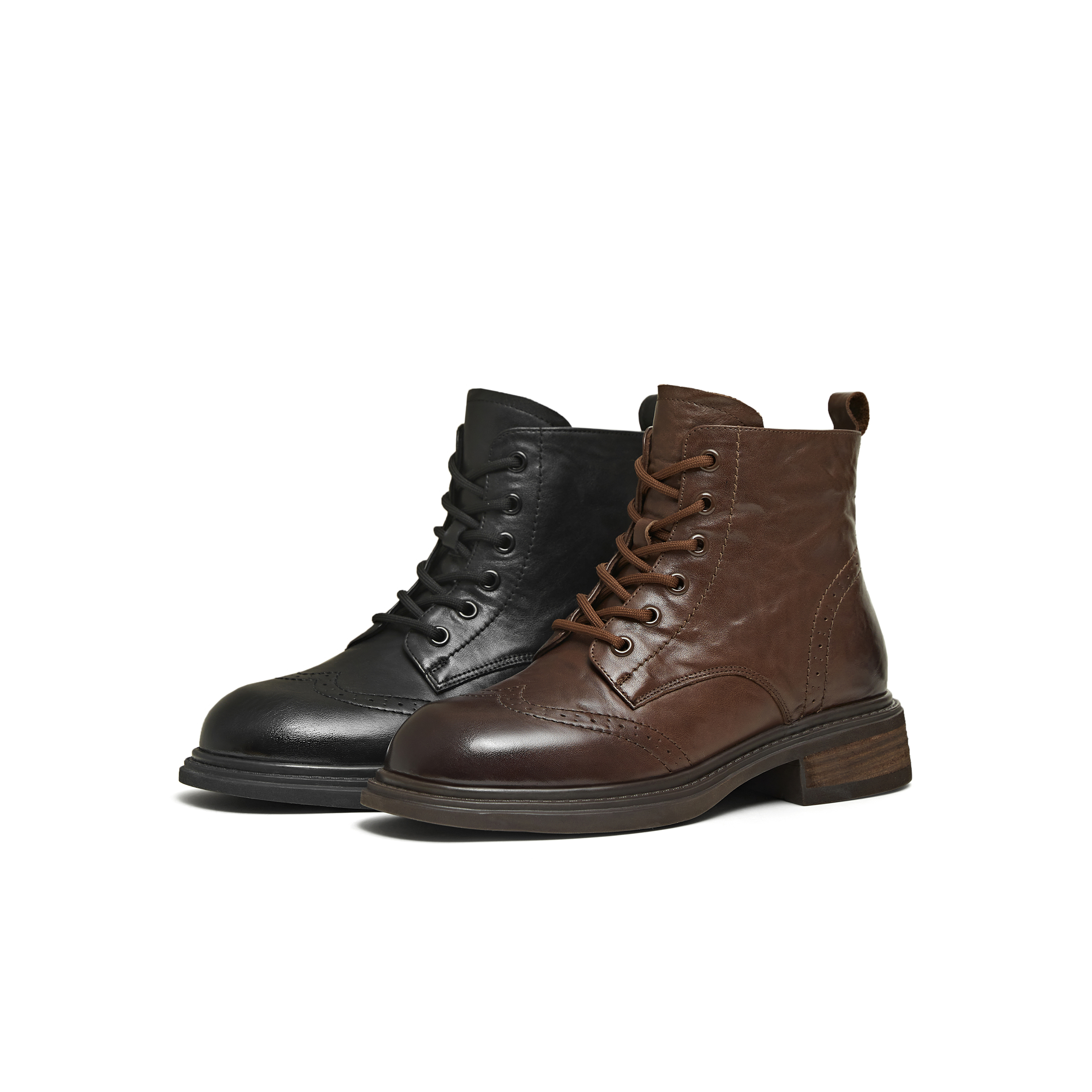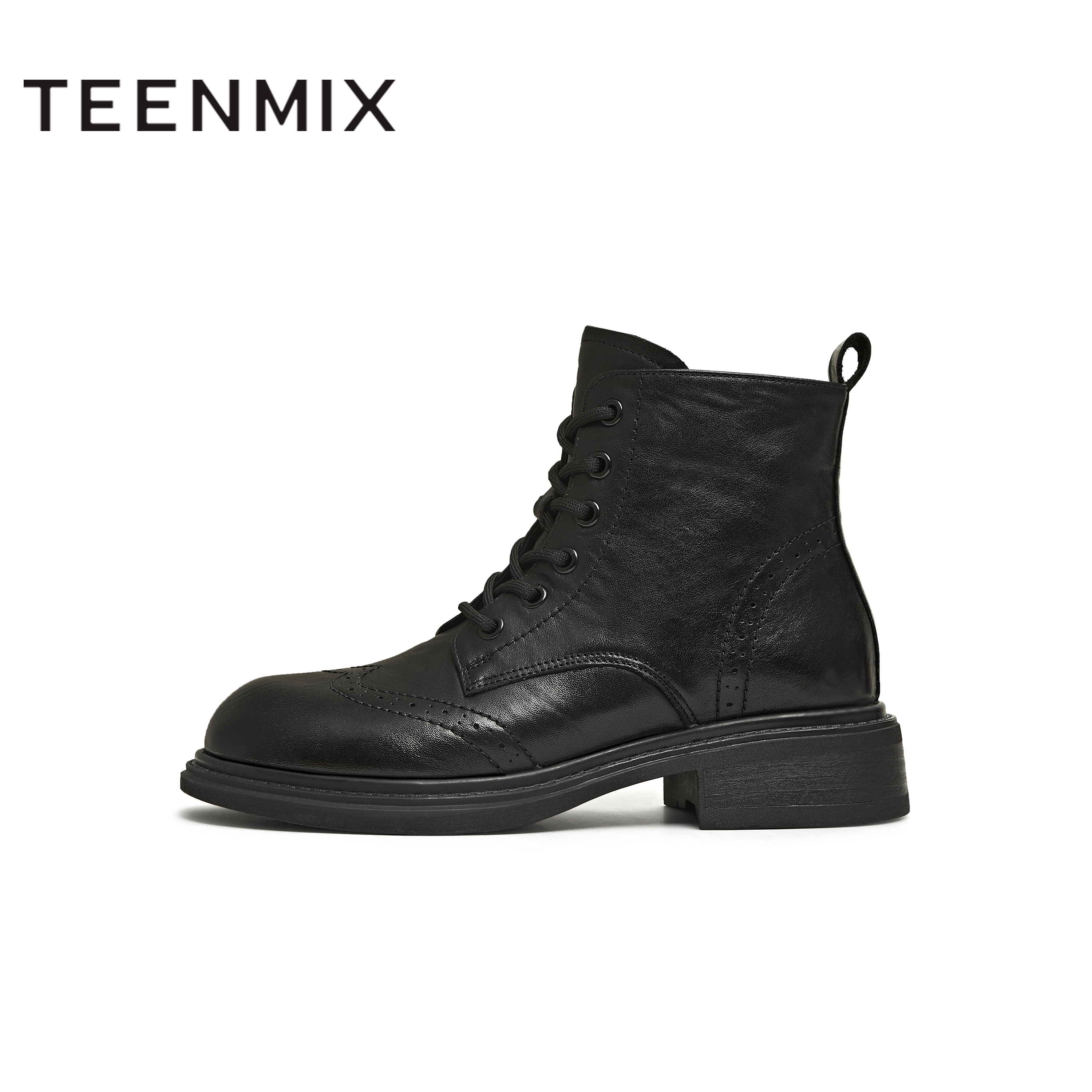 天美意复古厚底英伦马丁靴女系带休闲短靴皮靴2025冬新款KDX29DD5