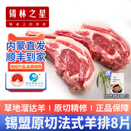 锡林之星 法式羊排新鲜内蒙原切战斧小羊排冷冻烧烤半成品500克