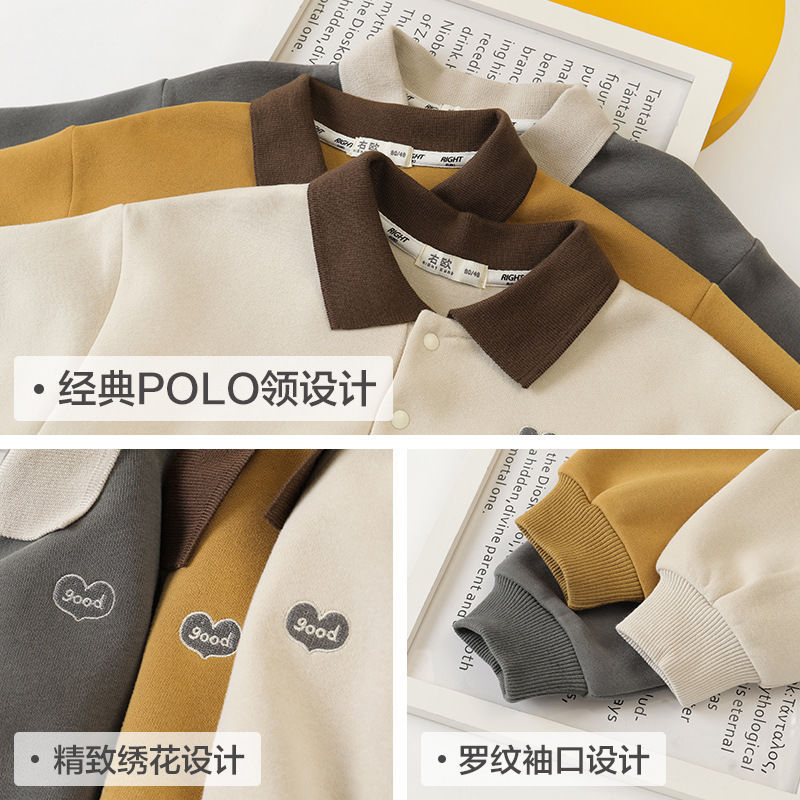 男童POLO领卫衣春秋2025新款童装儿童宝宝小童上衣女童长袖打底衫