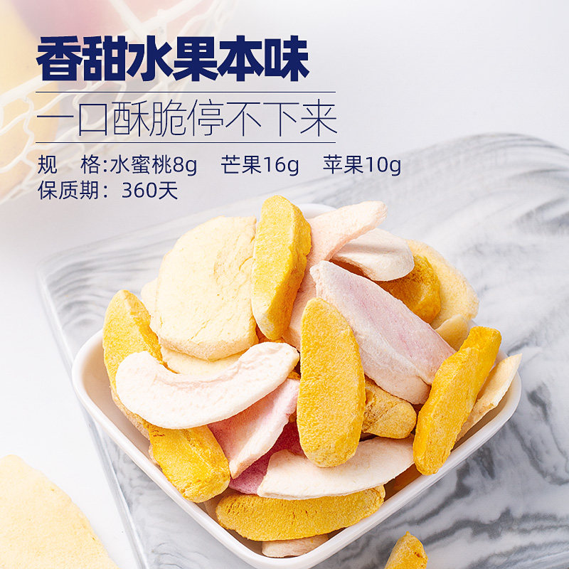 每鲜说0添加冻干水果干水蜜桃苹果芒果干3包网红健康儿童零食蜜饯