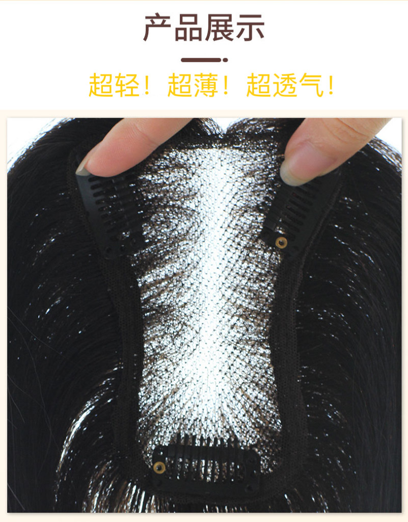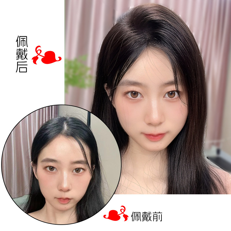 甜甜蝶形全手织优质顺发真人头顶补发片假发刘海蓬松增发量遮白发