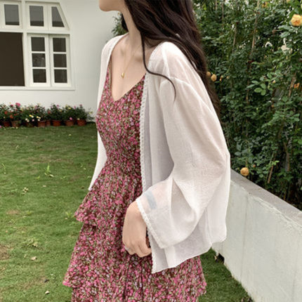 防晒衣女开衫夏季薄款外套百搭小披肩空调罩衫长袖雪纺沙滩上衣短