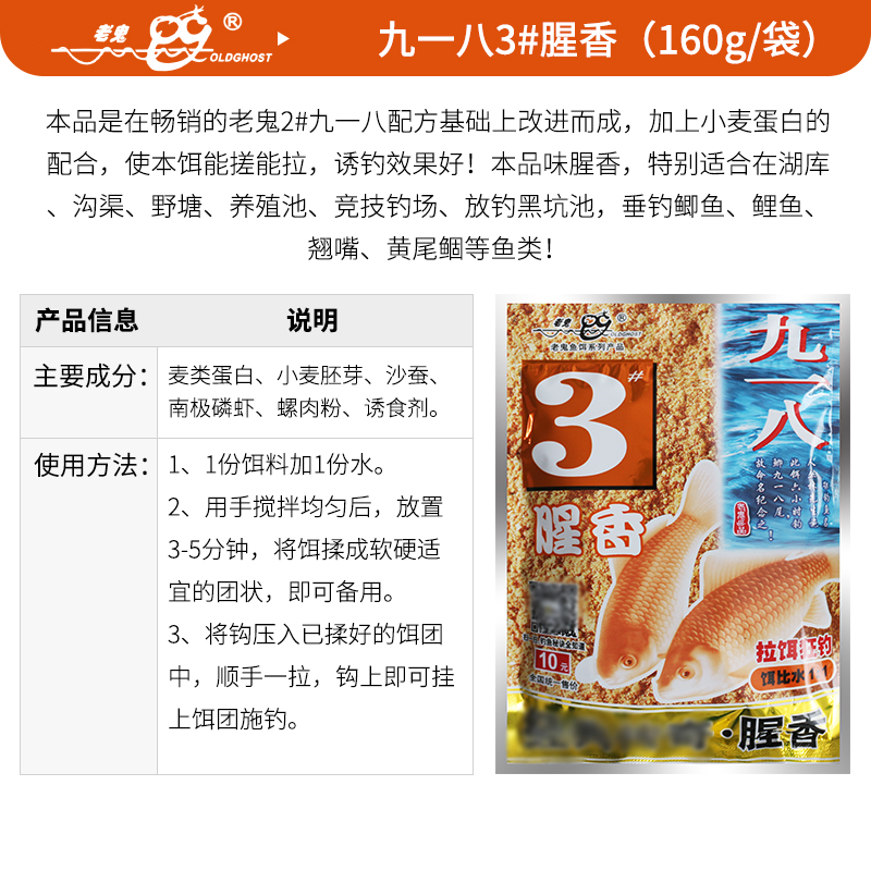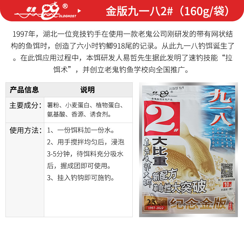 老鬼鱼饵料纪念金版918九一八2# 1#薯味3#腥香4#浓腥野钓休闲钓饵