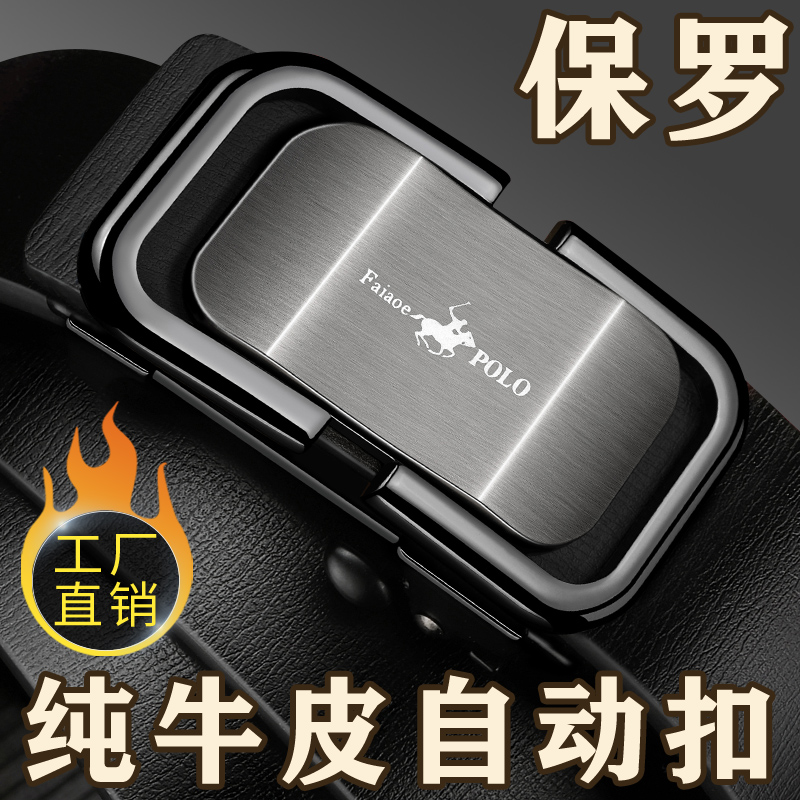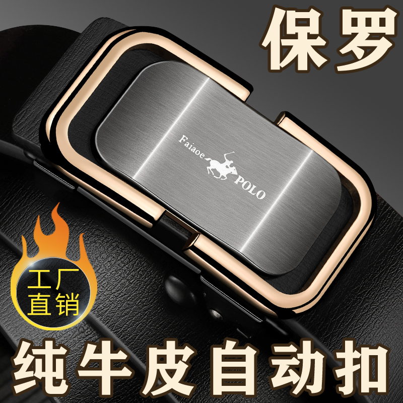 保罗皮带男士内穿自动扣新款腰带真皮纯牛皮韩版百搭休闲商务裤带