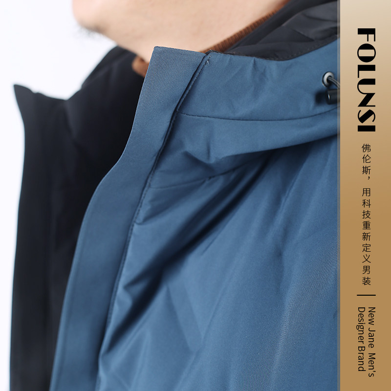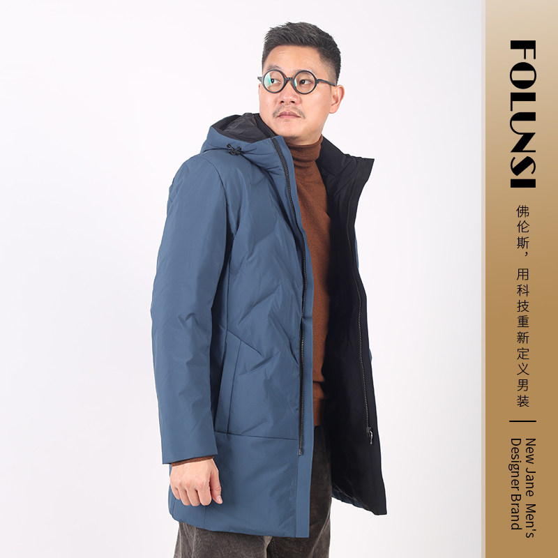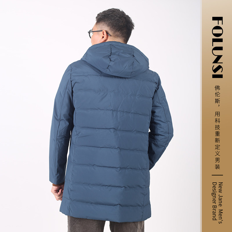 佛伦斯FOLUNSI男装潮流休闲连帽鸭绒羽绒服冬季中长款长袖外套