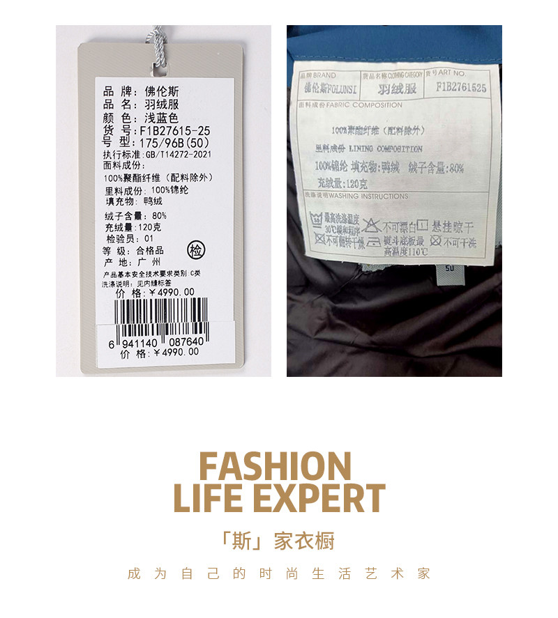 佛伦斯FOLUNSI连帽鸭绒羽绒服