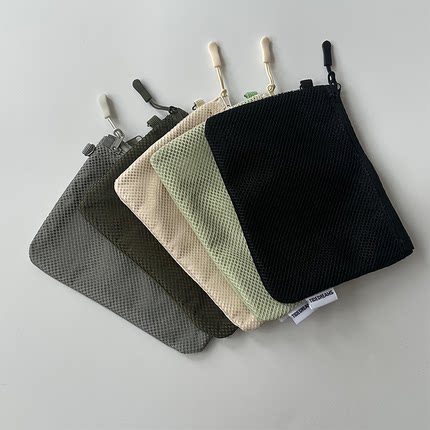 纯色双拉链包便携式零钱手机袋大容量口红化妆包证件护罩收纳包袋